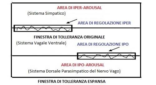 Il concetto di Finestra di Tolleranza di Siegel è stato in seguito integrato da Porges nella sua Teoria Polivagale, secondo la quale nel Sistema Nervoso Autonomo vi sono tre diversi sottosistemi organizzati gerarchicamente che regolano le risposte agli stimoli, ognuno dei quali corrisponde a ciascuna delle tre aree della Finestra di Tolleranza: il Sistema Vagale Ventrale, che consente di ragionare e decidere in modo flessibile e con consapevolezza, che è correlato con la Finestra di Tolleranza Originale; mentre il Sistema Simpatico è correlato con la risposta di Iper-Arousal e infine il Sistema Dorsale Parasimpatico del Nervo Vago con quello dell’Ipo-Arousal.